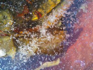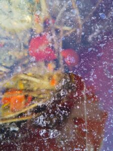 花壇のスイレンの水も凍って。