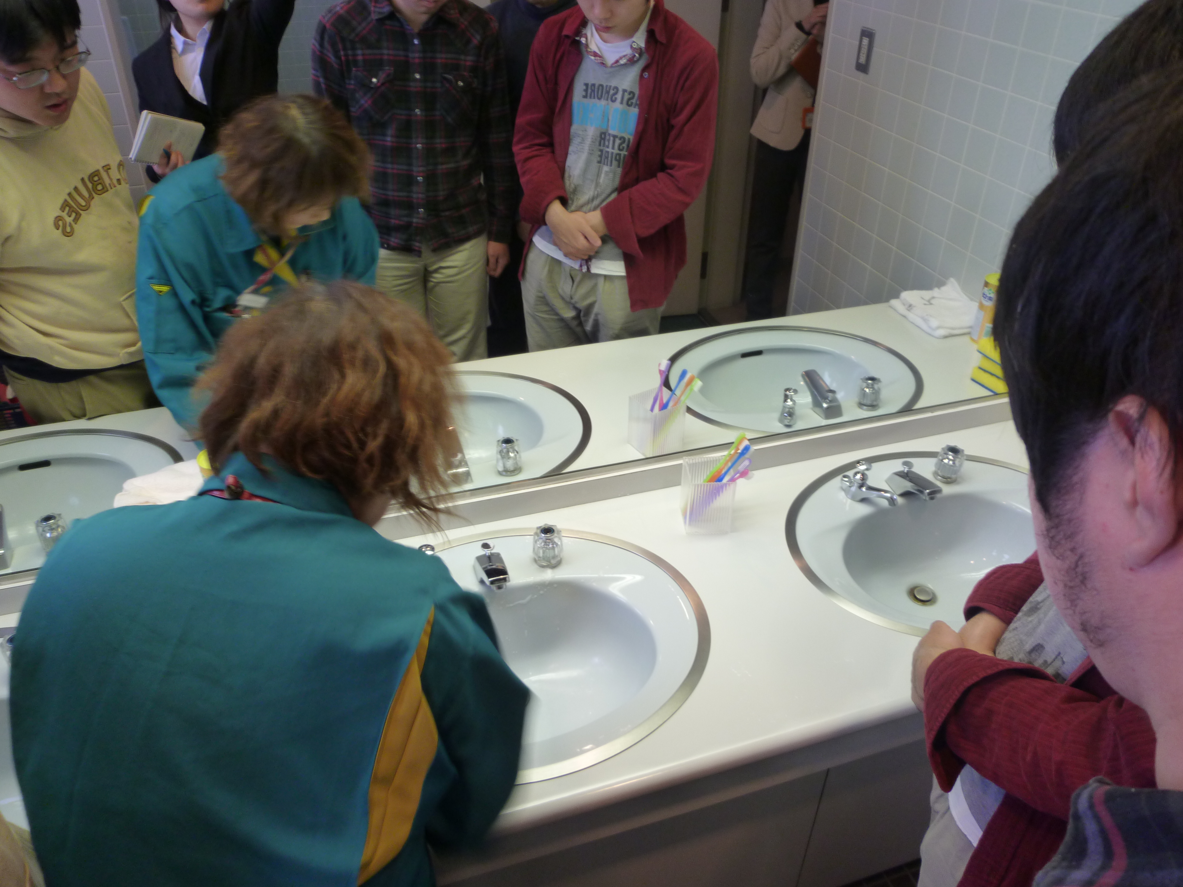 今回はモップの使い方とトイレ・洗面台の清掃について教わり、実践もしました。