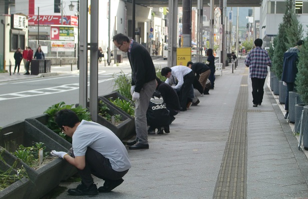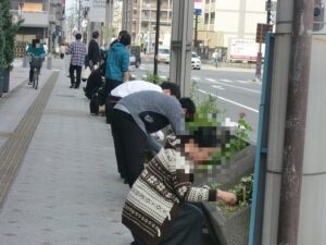 強い風に耐えた花苗は、少し傾いていたのでそっと起こしてあげました。