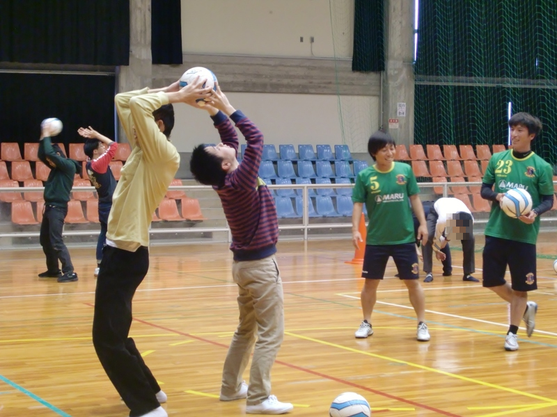 休憩後は一人一個ボールを持って蹴ったり投げたりの練習、再度休憩を挟んだら今度は二人一組で。