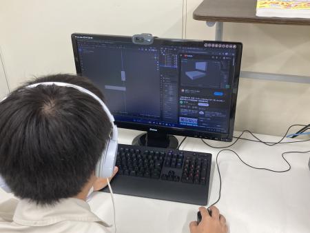 実習では、Blenderを使って基本操作を学びながら「テーブル」の製作に挑戦。PCに向かい、目を輝かせて夢中で作業する姿がとても印象的でした✨