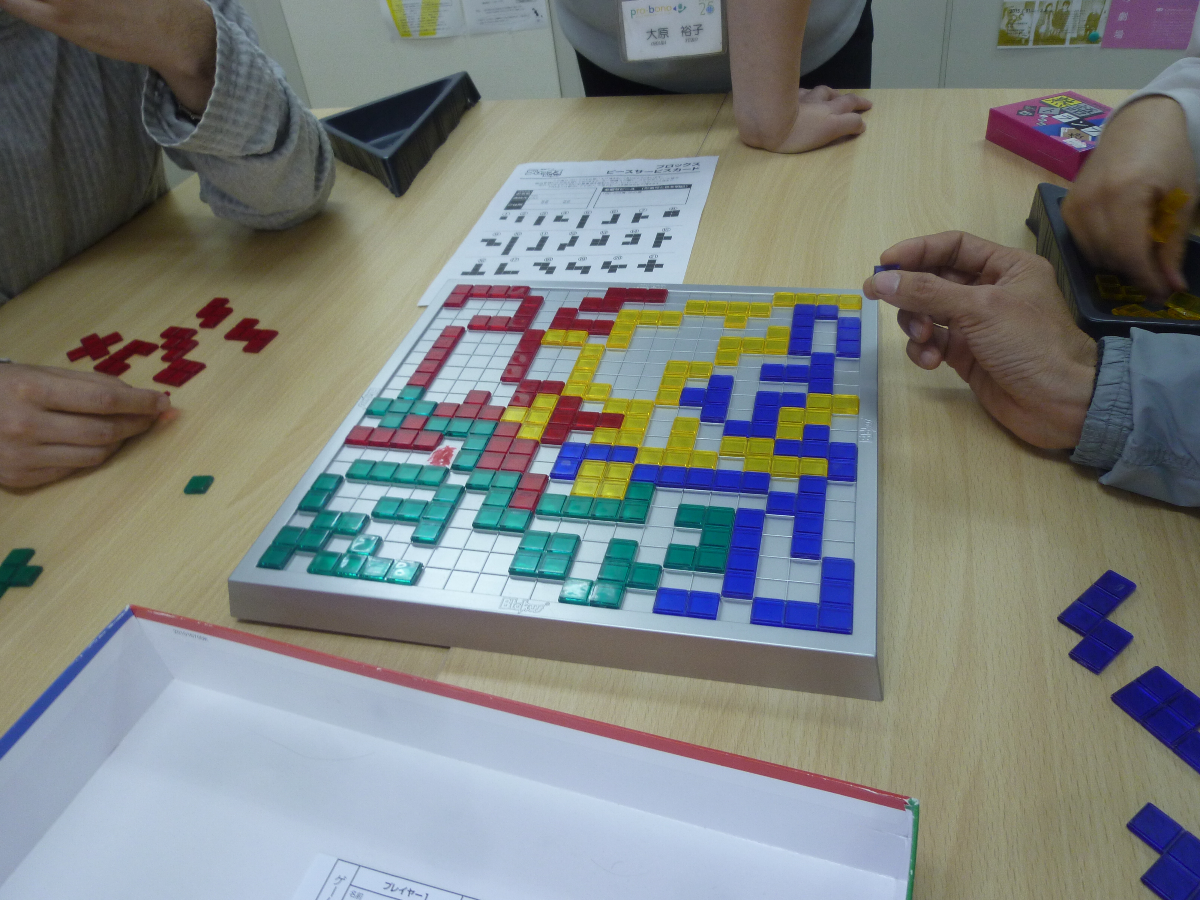 チョコが冷えて固まるのを待つ間、ブロックスや熟語トランプで遊びました。