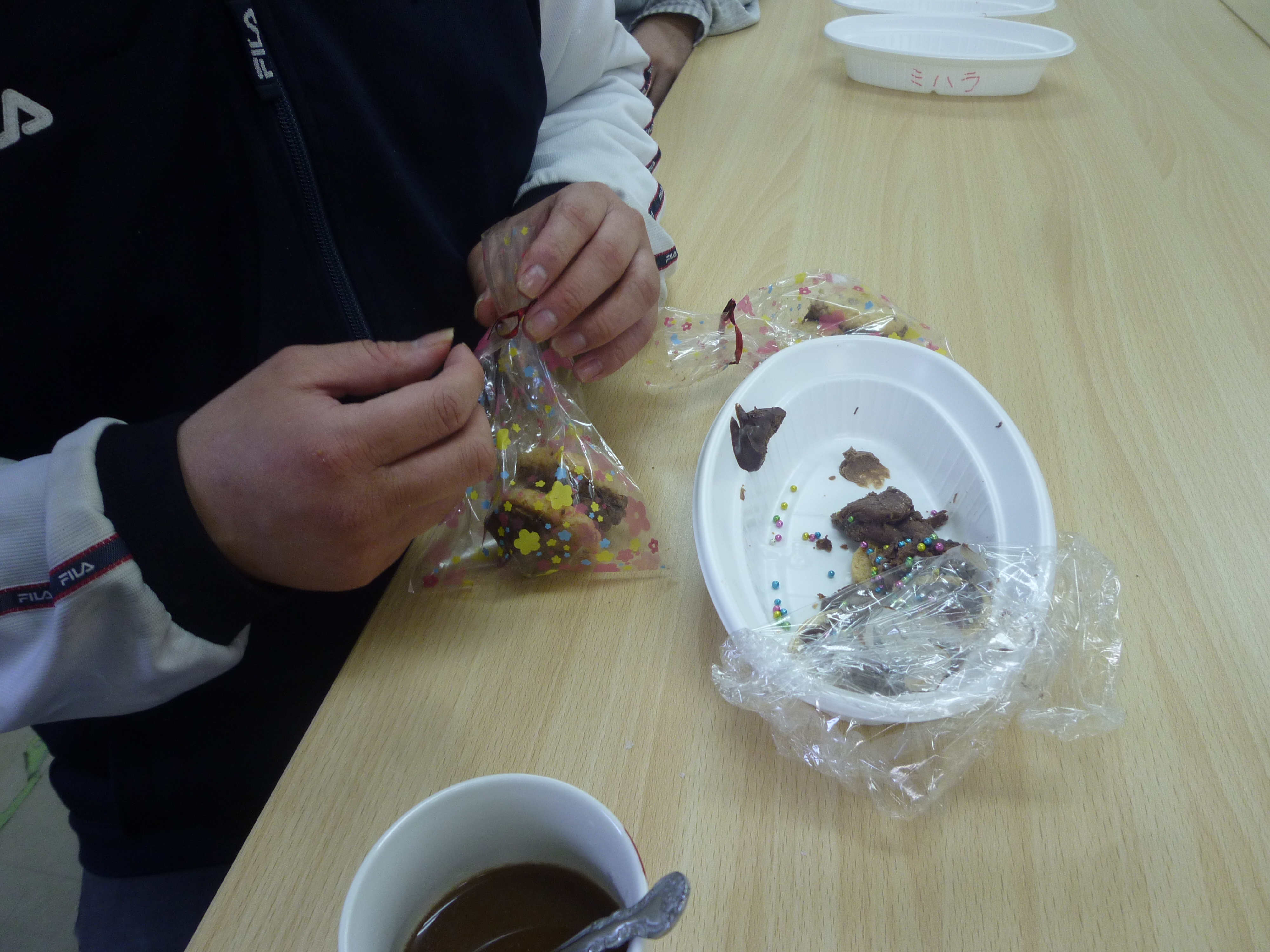 8枚のチョコクッキーを全部食べきった人もいれば、お家の方やお友達に渡すために