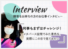 働けないと言われている方たちが、働けて、社会に出れるということを少しでも知ってもらえるよう、伝えていくことを頑張っていきたいです。仕事以外でいうのであれば、自分の力で色々な所へ行き、いろいろな景色を見たいと思います。メタバースの世界で見たものを、実際に見てみたいと思っています。