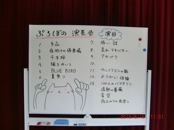 今回も、ぷろぼの各事業所から出演者を募って歌や踊りを披露していただきました。