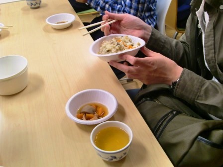 今月の夕べの集いは混ぜご飯とイカと里芋の煮物でした!