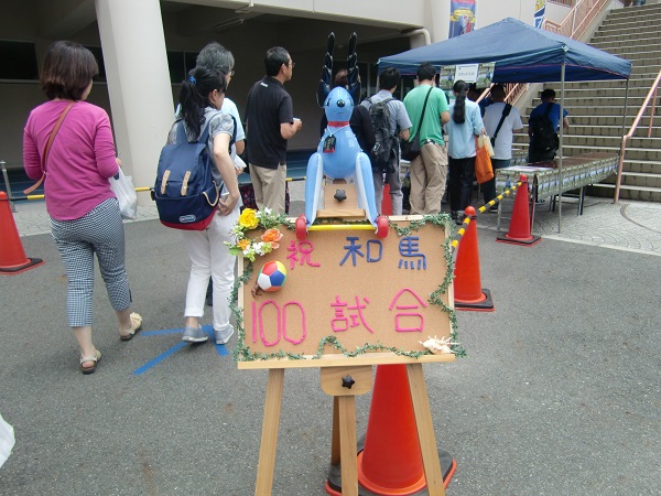 この日は「佐藤和馬選手JFL100試合出場」ということで、こんな素敵な看板が入場口にありました。