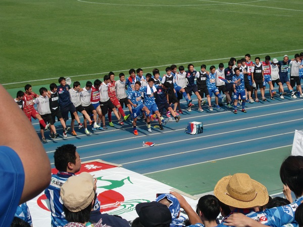 13:00キックオフ。すると、前半32分で佐藤選手がGOOOOOOOAL!記念試合の日にシュートを決めるなんて、さすが佐藤選手、もってます。笑
