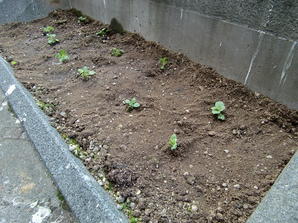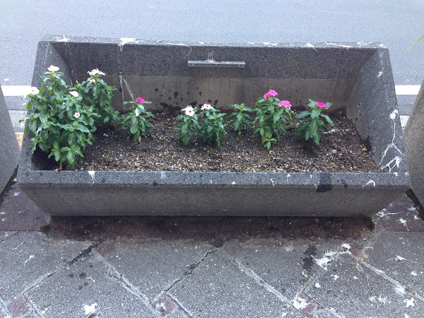 以前に植えた日日草の花壇の現状がこちらです。白いのがとっても目立つ!>_<