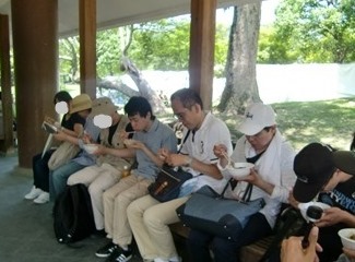 食べていると鹿が寄ってきてご飯をねだっていましたが