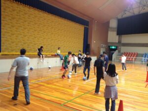 そして、ボールを使っての運動をした後、チームに分かれての対抗戦を行いました。