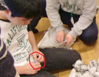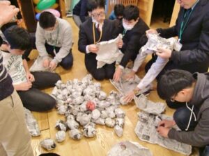 終了後、みんなで片づけ。新聞紙を広げると中から・・・