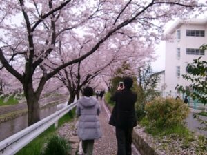 事業所を出て佐保川沿いの桜並木を歩き、県立図書情報館に向かいました。