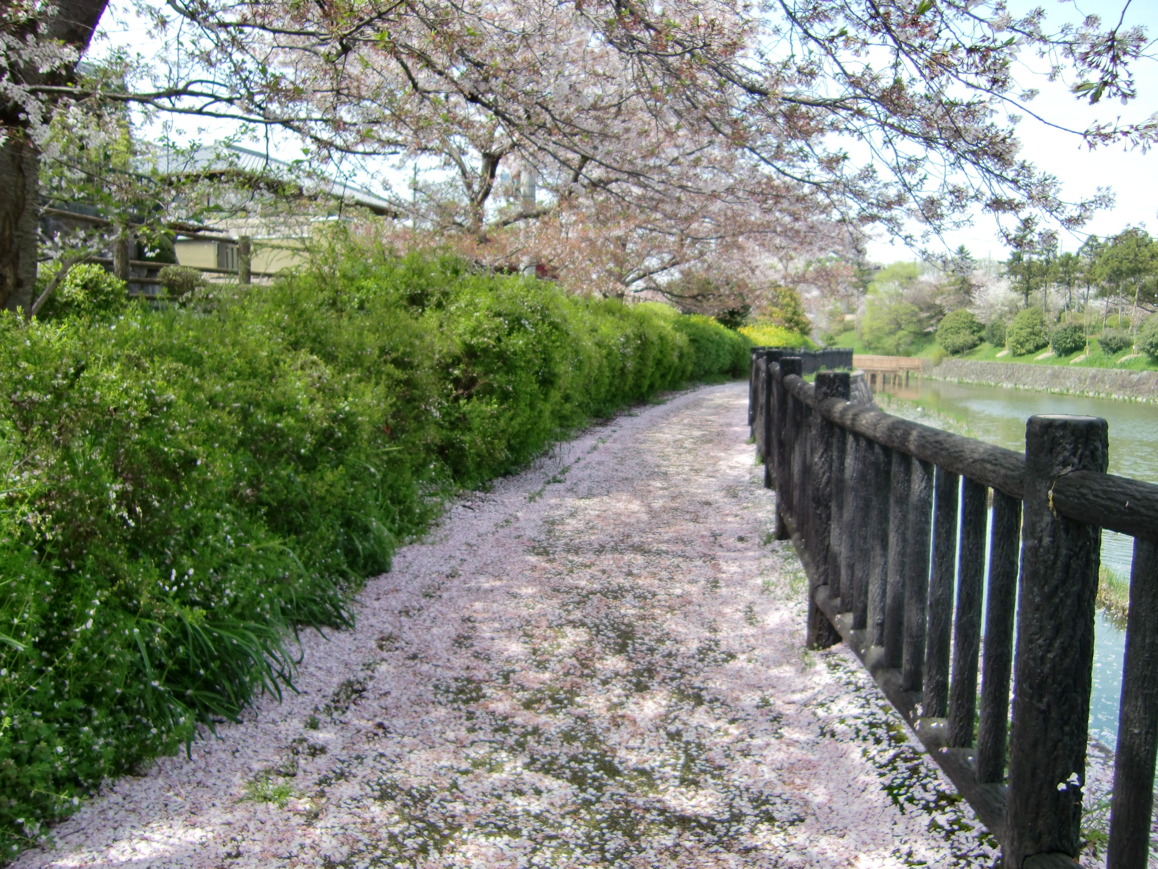 桜は散り初めていましたが、散った花びらが地面に敷き詰められているようで、きれいでした。