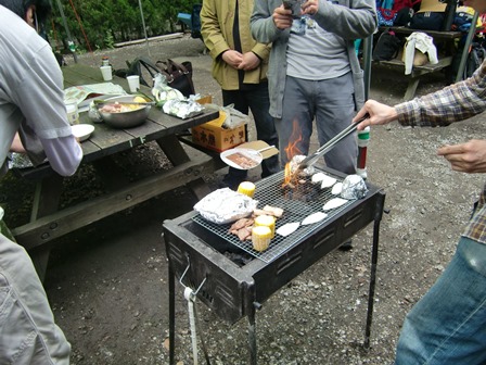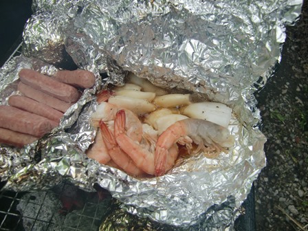 アルミで野菜を包んで焼けるように用意していたのですが、それを見た方が応用で色々アルミで包焼きをしていました。
