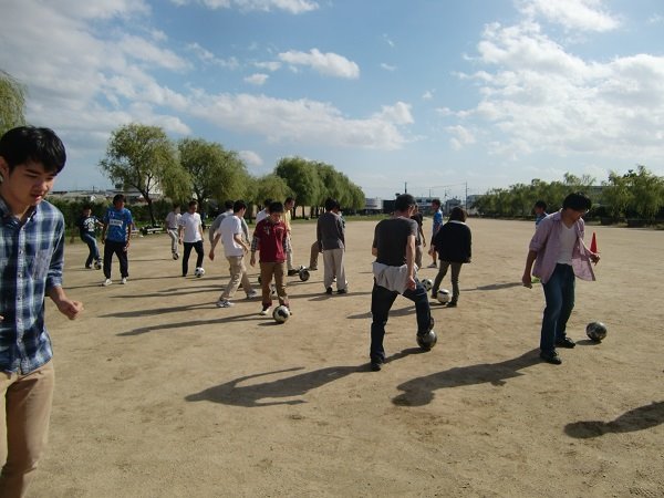 休憩を挟み、続いて堤選手指導の下、サッカーボールの扱い方の練習です。一人一個ボールを使い、ドリブルやフェイントを練習。ある程度したら、またまた三角コーン登場!自分のボールは守りつつ、みんなのボールを蹴って範囲の外に出しあいます。残り二人になった最終局面は外野も盛り上がり、白熱した戦いが繰り広げられました。
