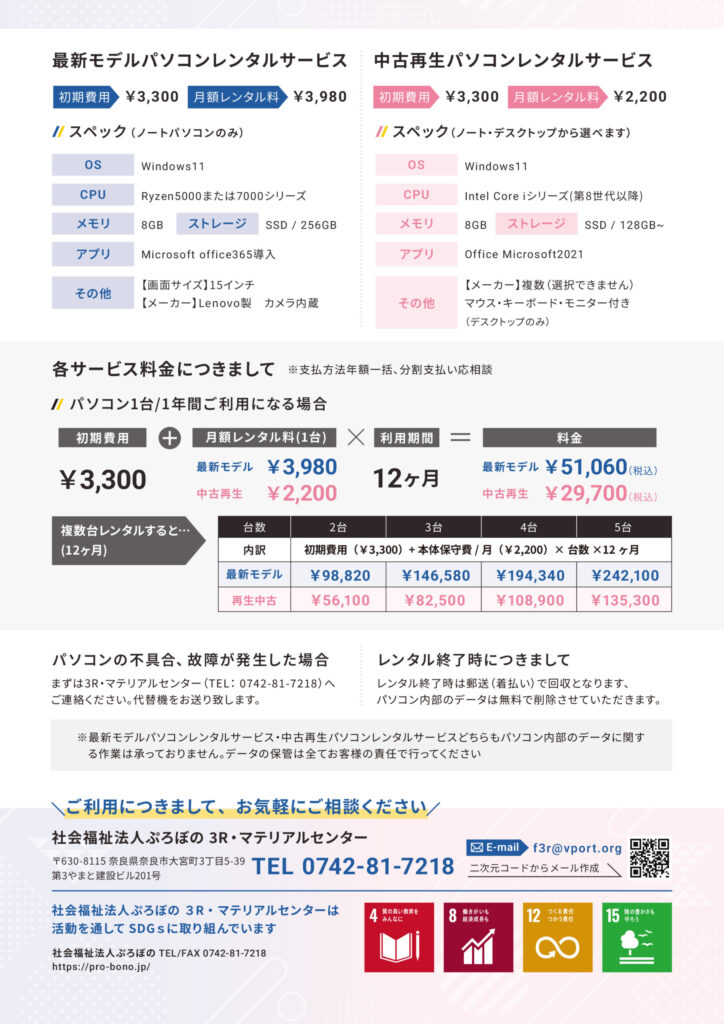 社会福祉法人ぷろぼの 3R・マテリアルセンターでは、新たに パソコンレンタルサービス を承っています。