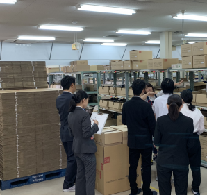 今回も2班に分かれ、ピッキング作業を体験させていただきました。最初は棚とハンディーの数字を追うのに必死でしたが、慣れてくると同じ班の人やご担当者様と確認しながら作業をし、ミスのないよう声を掛け合う大切さを体感出来たかと思います。